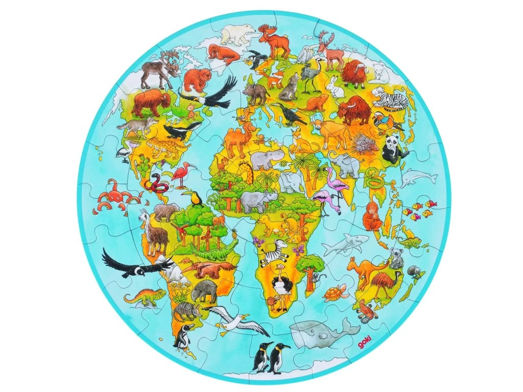 Toto dřevěné puzzle se zobrazením světa a přiblížením, kde který živočich žije, zaujme všechny zvídavé děti i malé školáky.