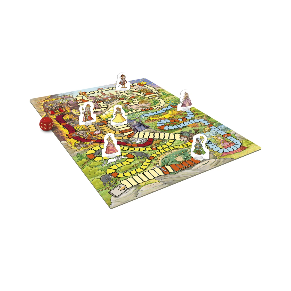 Balení obsahuje: 1 herní plán, 6 kartonových figurek, 6 plastových stojánků, 1 hrací kostku, pravidla.
