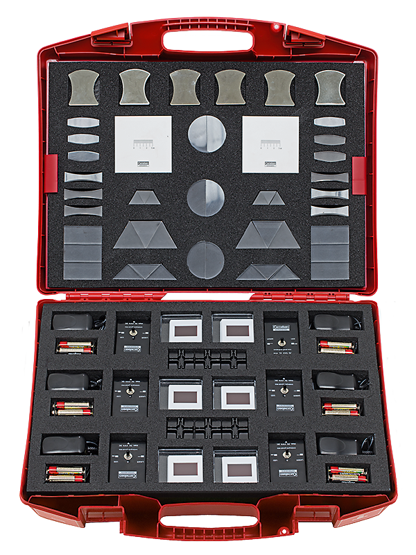 Žákovská souprava Optika 2 obsahuje součásti pro realizaci pokusů v šesti skupinách. Všechny experimenty je možné provádět i mimo odbornou učebnu. Rozsáhlý návod v českém jazyce obsahuje podrobné pokyny k montáži, tipy pro implementaci, pracovní listy pro studenty a kompletní vyhodnocení příkladů.