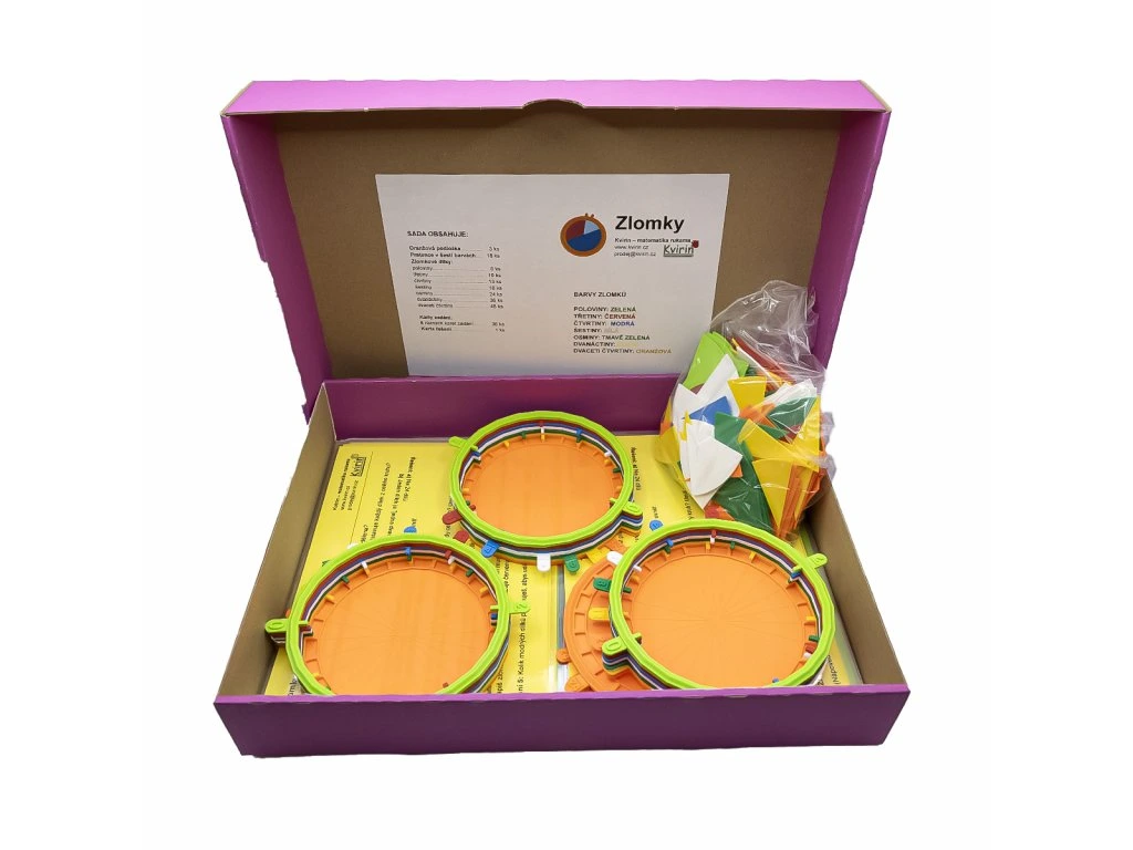 Zlomky jsou praktická a názorná pomůcka určená pro žáky 4.–7. třídy, vhodná i k procvičování u starších dětí. Sada umožňuje práci až 5 žáků současně a je kompletně připravena pro jejich samostatné učení – nechybí zadání ani řešení.